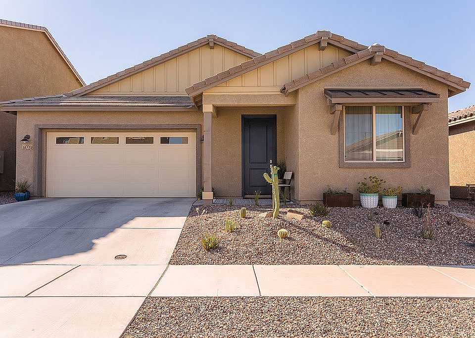 Welcome to the spectacular new community of Saguaro Trails! This popular Emory floorplan is loaded with upgrades & move-in ready (even better than new construction!). Large kitchen w/extended cabinets/counters, gourmet kitchen option, & custom backsplash provide plenty of room for kitchen gadgets & entertaining. Upgraded 8-ft doors throughout, two-tone paint (in agreeable gray!), upgraded lighting & fans in every room, tile throughout living spaces & baths. Primary bath has upgraded bath oasis with soaking tub & tile throughout. Built-in platform in laundry room. Pre-wired for surround sound speakers & alarm system, smart panel box in laundry, gas stub in backyard, & softwater pre-plumb. Backyard is landscaped & in full bloom! Complete w/turf & low voltage lighting for those summer nights