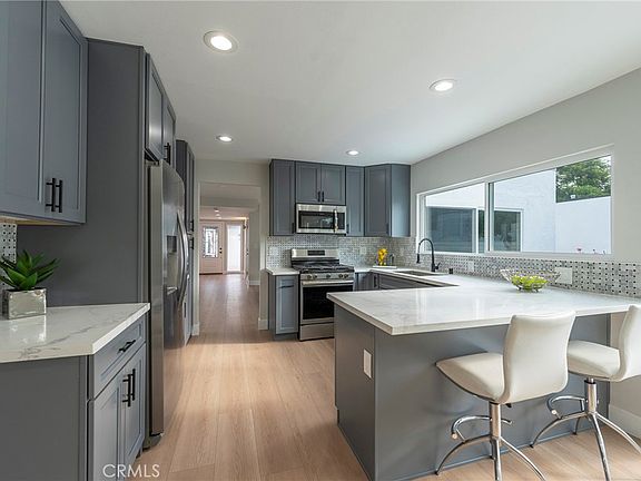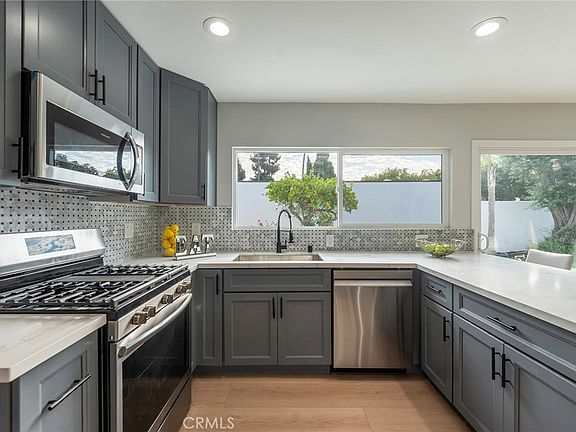 Gorgeous home in prime area of Fountain Valley...Owner remodeled and shows like a model.New almost everything from Chefs kitchen- new quartz counters, new cabinetry ,stainless appliances open to family room with wet bar.Formal living room with fireplace ,wood look laminate flooring through out .vaulted ceilings in master with new bathroom,custom tile shower,quartz counters and extra closet space.new windows and sliders .new paint .atrium area with custom tile, -private fountain perfect for morning coffee. 2 additional bedrooms with oversized closets -one full bath with new tile.All interior/exterior freshly painted. interior laundry area ,2 car garage with new epoxy coating on the floor.Good sized private walled in lot with new planters, trees,grass area for kids to play.a lot of windows create a light bright area.Kitchen looks out to back yard ..does not back or side any streets.park right around the corner..