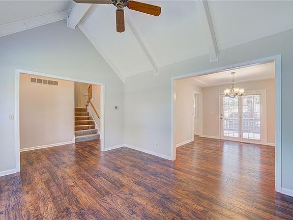 Spacious 4 bedroom, 2.5 bath home with over 2,100 sqft of living space. Interior features new carpet & fresh paint throughout, offering a move-in ready feel while leaving room for personal touches. Main level includes a vaulted living room, dining area, & kitchen with access to a two-tiered deck & patio overlooking the fenced backyard. Upper level includes three amply-sized bedrooms & a full bath. Large top-floor primary bedroom features ensuite bath. Lower level family room offers a beautiful brick fireplace, half bath, & laundry with walk-out access to the back patio. Dry basement provides additional storage, workshop or even more finished living space potential. Conveniently located just two blocks from Flat Rock Creek Pool & Tennis Courts with quick access to shopping, dining, & highways.