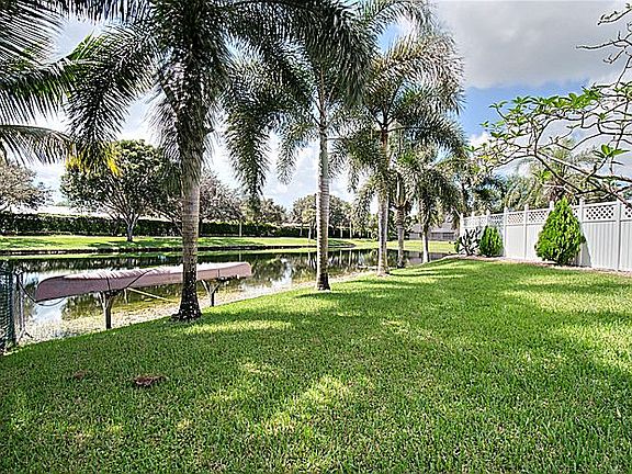 Spacious 3 bedroom 2 bathroom home in Parkwood Isles on large corner lot with tropical landscaping and water views. Open floorplan with large living, dining and kitchen area. Large master suite with walk in closet and french doors overlooking the pool. Salt water pool installed in 2005 with privacy fence and large side yards. Backyard has newly installed dock with water views. Newer roof, AC and tile throughout. Move-in Ready!