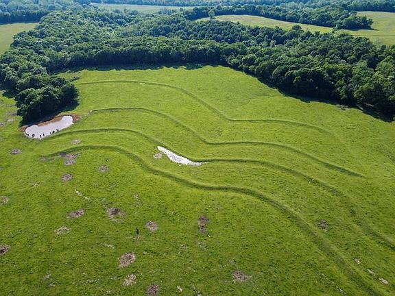 This cattle farm offers tremendous views and is perfect for a cattle farmer and someone who also likes to hunt. Recently limed & fertilized. Fenced & Cross Fenced as well as live water! 5 clean ponds and a spring/runoff. This property offers a variety of barns for all your cattle or horse needs including a haybarn & a covered barn. The machine shed has electric with a concrete floor and is approx. 50x70. Also a 30x30 2 car garage for an added bonus. Beautiful building sights are on this farm land to build your dream home. Well and Lagoon are already in place making it so easy to build& move-in! There are two entrances to this farm offering easy access to livestock. The prolific wildlife found on this farm is great for any hunter out there, in the wooded section of this property. There is the original farmhouse on this property.