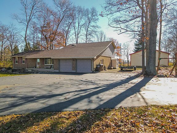 Country living at its best. This 4 bedroom, 2 bathroom, 2 car garage home built in 1973, has 2016 ft.² and sets on 2.62 acres. This property features a picturesque setting with winding black top driveway through mature trees. Covered front porch has plenty of room for enjoying the views. The entryway to the house is open to the living room. The kitchen and dining room have wonderful views of the back lawn. The kitchen has direct access to the large composite wood deck. All kitchen appliances stay, plenty of counter space, and island. Three bedrooms and full bath located on first floor. Laundry room located on the first floor. The den features a stone wood-burning fireplace. Loft space makes a spacious master bedroom. Master bathroom, and walk-through closet. The 30 x 32 insulated, heated outbuilding was built in 2014. It is currently used as a woodcraft workshop, has concrete floor, and would be great for many different uses. HVAC and air conditioning system replaced 2022. New carpet in 2022.