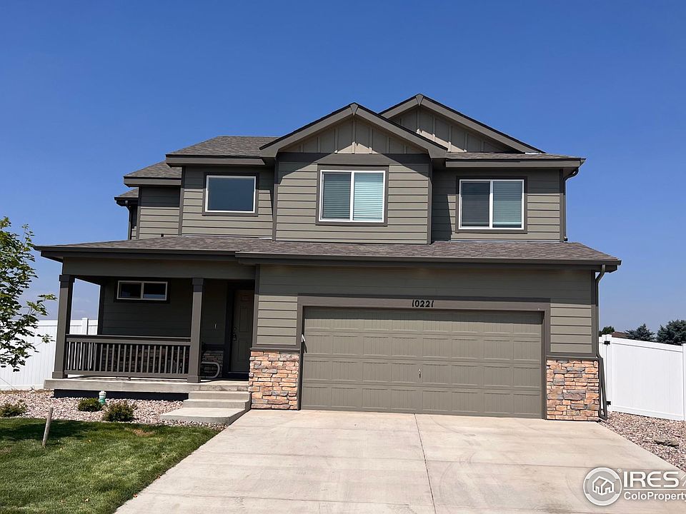 Welcome to this bright two-story house in West Greeley's Promontory subdivision. Built in 2022, this move-in ready house located on a secluded 0.21 acr lot features an open floor plan with a contemporary layout making it a great place to enjoy with family and friends. With 3 bedrooms and 2.5 baths, this house assures adequate space that can be expanded with the unfinished basement. The kitchen is equipped w/upgraded maple cabinets, full appliances, a breakfast nook and a kitchen pantry. Upstairs the master Suite offers beautiful views of the mountain range and connects to a 4pc master bath and an oversized walk-in closet with endless potential. The 2nd level also displays two additional bedrooms, a full bath & a laundry room with a folding counter. The covered front porch and back patio are great amenities for outdoor use and family enjoyment. You will get the benefit of a south facing driveway which facilitates snow melting during the winter as well as a 3-car garage (720sft) which offers extra space for cars or a workshop area. New upgraded A/C unit. Basement has rough-in plumbing for future bathroom. Step outside to the HUGE back yard where children and pets can play freely, or imagine yourself hosting a BBQ overlooking the sunset from your patio. This professionally landscaped backyard comes with a separate private fenced area that can be used for pets, future shed, or to accommodate your future garden plans. It also borders the community perimeter fence with no neighbors in the back adding extra privacy to your outdoor retreat. Longview Park is very close, offering playgrounds, baseball & soccer fields, pickleball courts and extensive open areas. Also nearby is Promontory Park where permitted fishing is allowed. This quite Sub Division is close to shopping areas in West Greeley and has easy access to many neighboring towns in Northern Colorado as well as Hwy 34 and I-25. Don't miss this home, schedule your showing today and start planning your future home now!