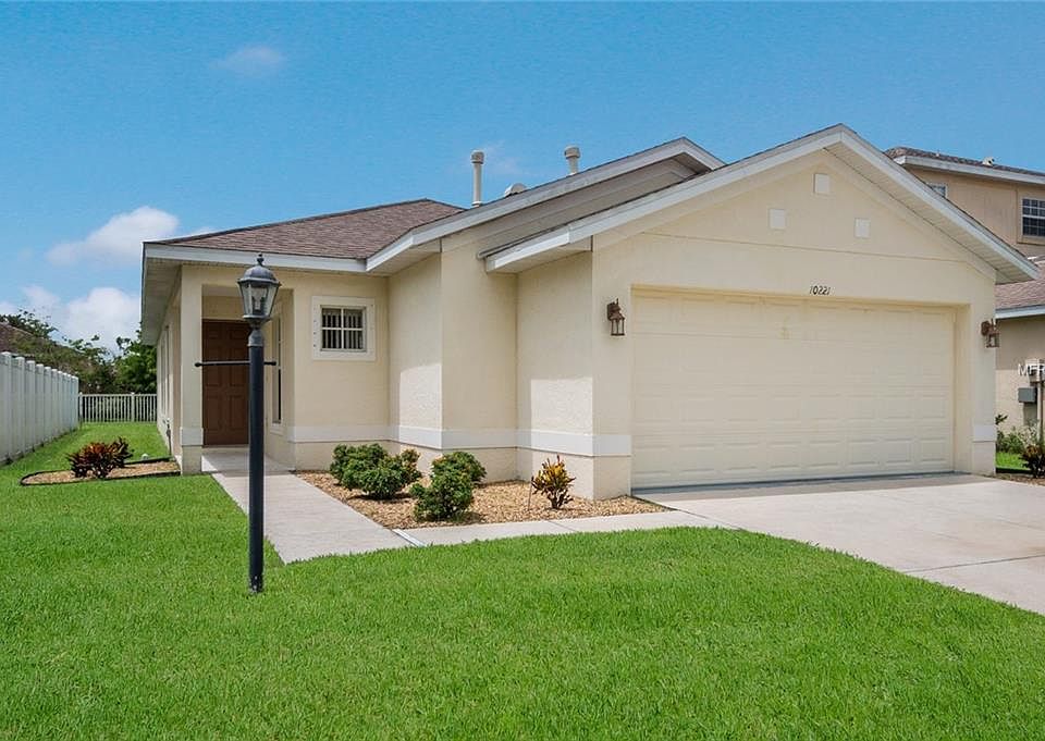 Living is easy in this charming, generously spacious residence located on a quiet cul-de-sac. With 3 bedrooms + a den, 2 baths, and stylish finishes, you'll enjoy this perfect setting for relaxing and entertaining. The open concept floor plan has beautiful 18" diagonal tile flowing throughout the main living areas. The kitchen offers corian countertops, stainless steel appliances and a large pantry. Low taxes, minimal HOA fees and no CDD fees maximize every dollar in your housing budget with this home!!