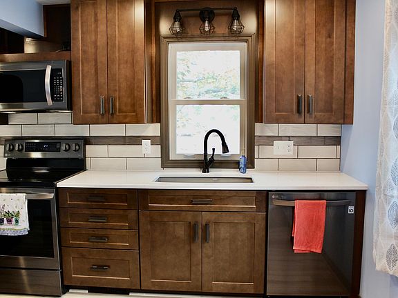 Check out this charming 4 bedroom home with a beautifully remodeled eat-in kitchen and a 3 stall HEATED 1,350' garage w/drain & electrical! This home has 2 bedrooms & bath on main floor & 2 upper bedrooms. Nice hardwood floors & arched doorways. The eat-in kitchen has been completely renovated, new flooring, all new appliances, quartz countertop, new cabinets & light fixtures. The basement has potential of a family. Electrical panel has been updated. This home sits on a large 132' x 132' lot with mature trees. Large deck in the back & two sheds for extra storage.