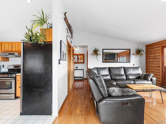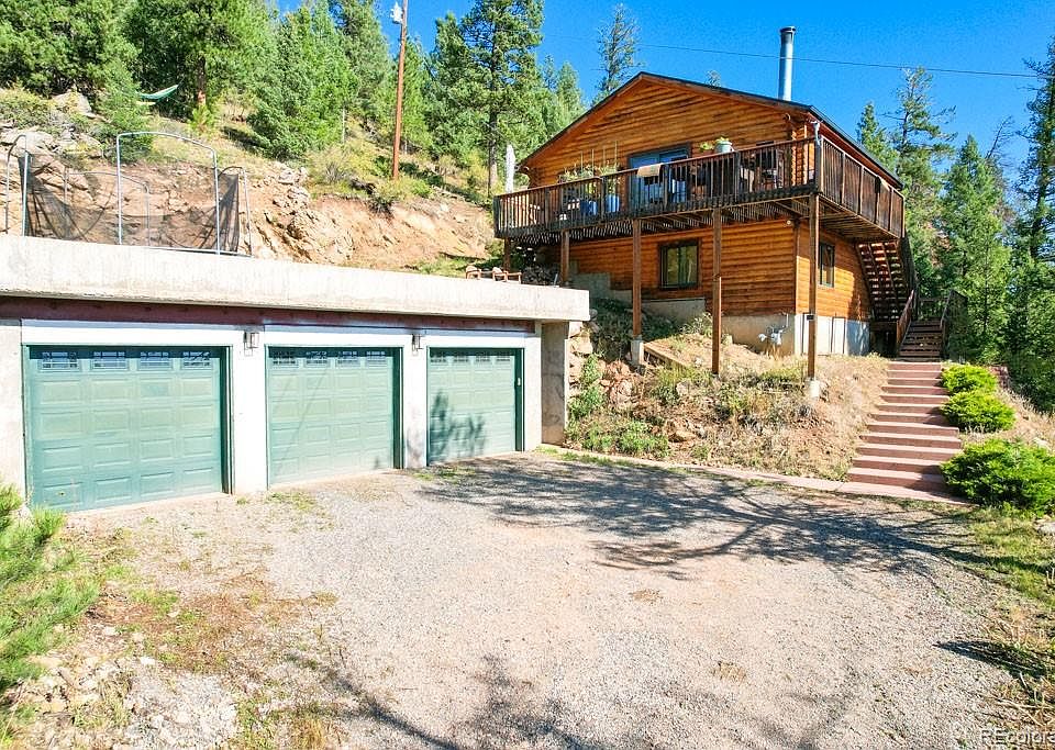 Experience true mountain living in this charming log home on over two private acres in Conifer, CO. Perched above the other homes on Blue Sky Trail, this property offers breathtaking, unobstructed views of the foothills and ultimate privacy. The oversized three-car garage provides ample storage for vehicles, outdoor gear, or a workshop. Inside, the open-concept living, dining, and kitchen area is perfect for entertaining, with stainless steel appliances in the kitchen, a cozy fireplace in the living room, and expansive windows that flood the space with natural light. Step outside onto the wrap-around deck to take in the sweeping vistas or access the functional flat yard, ideal for kids, dogs, or outdoor gatherings. Upstairs, you'll find two spacious bedrooms and a full bathroom with a skylight, adding warmth and brightness. The walkout basement features a third bedroom, another full bathroom, a laundry room, and a flexible living space that can serve as a home office, gym, additional living room, or entertainment room. A wood-burning furnace in the basement living area provides an efficient and cozy heat source during the colder months. This home offers the perfect blend of rustic charm and modern convenience, located just minutes from grocery stores and restaurants in Aspen Park and Conifer, and only 35 minutes from Denver.