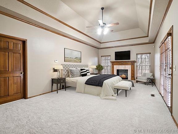 The primary suite is truly enormous, providing a luxurious retreat with all the space you could desire and a fireplace. Each bedroom in this home is spacious, promising comfortable accommodations for all. Architectural details such as trayed ceilings and crown molding add elegance throughout.