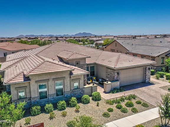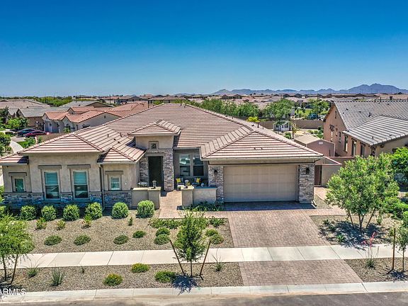 Bring your large family to this gorgeous basement home in gated section of the highly sought after community of Eastmark. Over 5,000 sqft, 6 bed/4.5ba, study/den, 2 bed & large bonus room in basement. Plantation shutters, extended baseboards, large windows, open split floor plan, modern designs/colors through out. Gourmet kitchen has lots of cabinet/counter space, top of the line appliances, large island. Backyard has a fire pit, travertine patio/pool deck, pergola, built in BBQ, artificial turf, new heated salt water pool with water features & gas fire bowls. There is low voltage/irrigation in backyard. Large garage with storage. This home gives you privacy in a quiet cul-de-sac, but access to all Eastmark has to offer. (Qualified buyers only, agent please see private remarks).