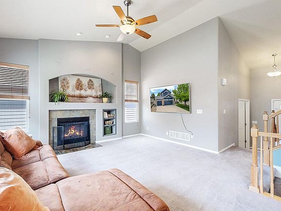 A truly turn-key two-story home in the desirable St. Vrain Ranch community. This property features a spacious, open floor plan and a BRAND-NEW ROOF. It also includes SMART home features like a Nest thermostat and video doorbell. As you step inside, you'll be greeted by soaring vaulted ceilings in the family room, which beautifully highlight the gas fireplace, accent wall, and ceiling fan. The updated kitchen is perfect for gatherings, featuring an island, newer stainless-steel appliances including a gas stove/oven, a pantry, and abundant storage and counter space, all complemented by gleaming hardwood floors. All kitchen appliances and washer and dryer are included. The main level offers a half bath, versatile laundry room with contemporary rectangular tile and a study that can easily serve as an additional bedroom or flex space. Step outside to entertain and BBQ in your private backyard oasis, complete with mature landscaping, a spacious patio that spans the width of the home, a hot tub, vinyl fencing, and a shed for extra storage. You'll also enjoy access to the greenbelt just around the corner. Upstairs, you'll find three generous bedrooms, including a master suite that features a ceiling fan, vaulted ceiling, double sinks, tile floors, and a full bath. The secondary bedrooms are conveniently connected by a Jack and Jill bathroom. Enjoy contemporary paint and updated light fixtures throughout. The unfinished basement is a blank canvas ready for your personal touch, complete with rough-in plumbing for future expansion. The three-car garage offers ample room for vehicles and additional storage. With easy access to shopping and I-25, you're just a quick commute away from Denver, Boulder, or Longmont. Don't miss out on this fantastic home that combines modern amenities with classic charm, making it the perfect place to call home.