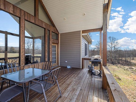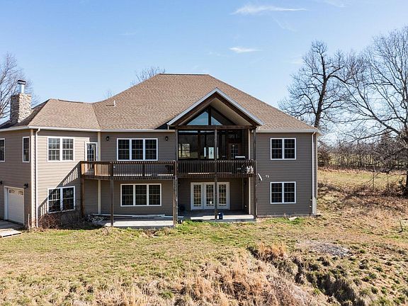 If you are looking for a nice quality home HERE IT IS! Beautiful home on 9 +/- acres located in the Ozarks is one not to miss out on. Here you will find a custom one owner home. Located on paved road, the private drive leads you to the newer home that is set back for privacy. Entering the home you can't help but notice the cathedral ceilings and massive windows with amazing views. There are 5 bedrooms and 5 full bathrooms. The kitchen has granite countertops, double oven, walk in pantry, breakfast area and island with more seating. Kitchen is open to the hearth or family room with fireplace. The spacious master suite is on the main level with a master bath that offers a soaking tub and walk in shower with a huge closet. There are two additional bedrooms and bathrooms on this floor. The lower level has a great family room that is open to an area used as a office, but could be a play area, workout room or anything you like. Here you will find 2 additional bedrooms and 2 full bathrooms.