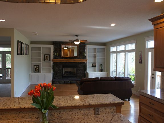 - RoomFamilyRoomFeatures: Fireplace, Family Room/Kitchen Combo, Exterior Entry, Living Room/Dining Room Combo, Built-in Features, Engineered Hardwood