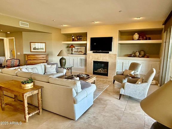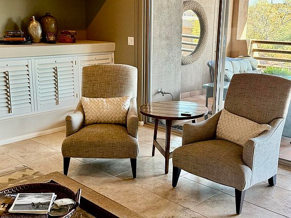 This luxurious, Zen-like oasis is perfectly situated near the community pool and framed by stunning boulder outcroppings, offering a tranquil yet sophisticated escape. Inside, a gas fireplace adds warmth and ambiance, complementing the tasteful furnishings that make this villa feel like home.