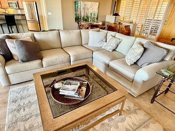 Experience the ultimate in desert living in this stunning top-floor villa, nestled within the prestigious Troon North Golf Community. Just a short walk to the clubhouse and restaurant, this 2-bedroom, 2-bathroom home with a den offers an open floor plan designed for comfort and style.