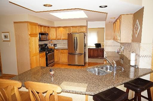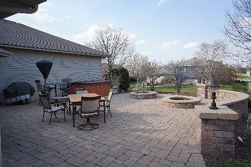 Picture perfect 3 step ranch - large corner lot! You will be amazed - Resort like paver brick patio - perfect place to entertain with the built in firepit -gas start & hot tub that stays! Vaulted great rm w/ fireplace. HUGE kitchen w/ granite tops, SS appl & hardwood floors. Awesome finished basement w/ Full bath! 3 large bedrooms. Master bath w/ big soaker tub & double sink! 3 car heated garage with Hot & Cold Water