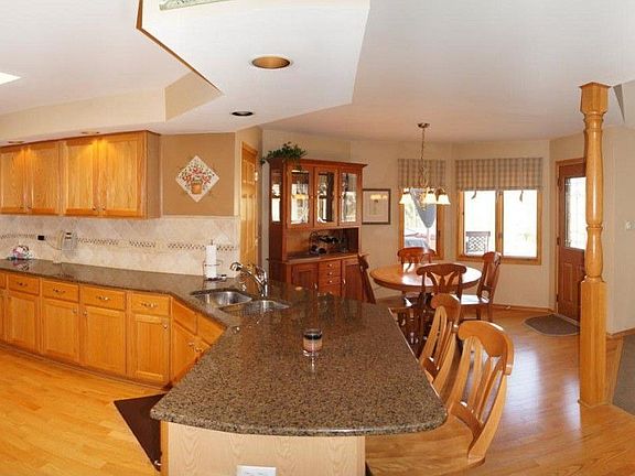 Picture perfect 3 step ranch - large corner lot! You will be amazed - Resort like paver brick patio - perfect place to entertain with the built in firepit -gas start & hot tub that stays! Vaulted great rm w/ fireplace. HUGE kitchen w/ granite tops, SS appl & hardwood floors. Awesome finished basement w/ Full bath! 3 large bedrooms. Master bath w/ big soaker tub & double sink! 3 car heated garage with Hot & Cold Water
