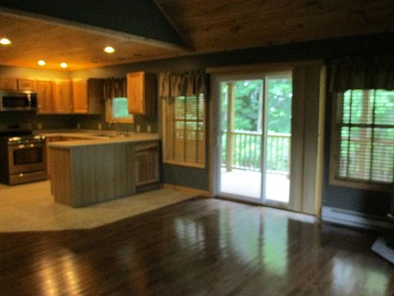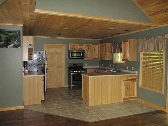 In 2010, a deep concrete foundation was poured. and the rest of the construction was slowly completed. The aroma of the pine wood construction is still in the air! Open concept of one floor living. Bed and full bath on the main floor. Kitchen has solid surface counter ,solid wood cabinetry, ceramic tile floor and Frigidaire appliance package. Like new. Loft bonus room could be bedroom or office space. Cozy wall to wall beige tone carpet. Tongue and groove pine ceilings, ceiling fans and pellet stove top this place off! Sliding Anderson door to the back deck which overlooks the acreage.