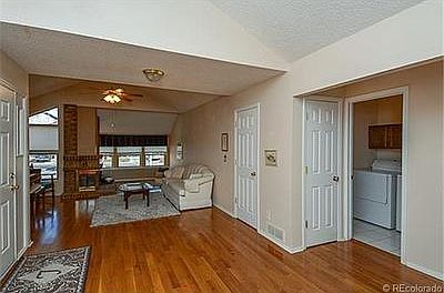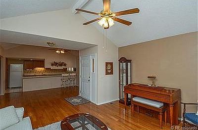 Patio home neighborhood, unique low maintenance living! This Ranch/1 story with finished basement & attached 2 car garage has over 2500 finished SQFT, backs to greenbelt & pond w/fountain. Open great room floorplan w/4 bedrooms (2 up, 2 down), 3 bathrooms. Main floor oversized Master Suite w/attached 4-pc bath (with skylight & soaking tub!), vaulted ceilings, huge walk-in closet. Newer hardwood flooring throughout main level, new hot water heater, newer roof & front windows. Large family room has conversation pit & wood-burning fireplace. Open kitchen boasts new tile backsplash, vast counter space, bar seating plus dining area. Access to covered patio and garden area; view of pond! Finished basement offers massive living space: a rec/bonus room plus 2 huge bedrooms and 3/4 bathroom, storage space. Multiple closets throughout, ceiling fans in all main floor rooms. Quiet cul-de-sac location with multiple guest parking spots. Walk to shopping & dining, near public transit.