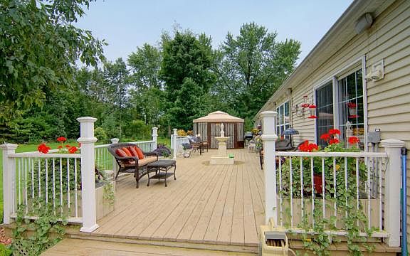 For details and more pictures, call listing Agent: Connie Free at (269) 429-6666 or http://cressyeverett.com/14053038 Just 1 1/2 Hrs. from Chicago. This Pristine, 2330 sq.ft., three bedroom ,2/1/2 bath open floor plan home has Oak Cabinets, and an Island with sink and seating in the kitchen. Crown Molding. Newly remodeled Master Bath with Spa Tub, Porcelain Travertine Tile and updated Brushed Nickel fixtures. Custom Lighting inside and out. Gas Log Fireplace with remote. Sitting on 2.86 Beautifully landscaped and manicured acres. The Property boasts a large Spring Fed Pond, complete with 3 Fountains and 2 White Swans. Enjoy the secluded feeling that the 100's of pines surrounding the perimeter of the property provides. Entertain on the large dual terraced deck overlooking your fenced backyard Paradise. Also includes your own Nursery with many Spruce, as well as Apple, Peach,Pear Trees. MUST SEE!