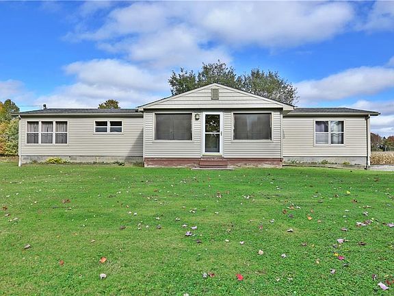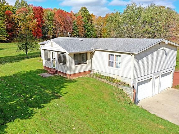 Enjoy the quiet, rural countryside and wonderful scenic views found at every window of this move-in-ready Orwell home. Sat along a winding gravel drive, far off the main road; this expansive property reveals huge yard space and a walk-out style lower two car garage. A relaxing covered breezeway greets you before entering the open foyer where a spacious carpeted living room kicks off the three-bedroom ranch layout. Cream carpets fill the living space as a pair of inviting bedrooms join a skylight accented full bath found just around the corner. Opposite, formal dining passes by before opening into a gracious kitchen paired with a multitude of cabinets and a large center island. Casual dining space makes for sundrenched meals as the wood trimmed family room looks on. The rear hall lends to basement entry and rear patio exits as it finds you at the master bedroom suite. An oversized floorplan showcases a handsomely updated bath with bespoke tiled shower and first floor hidden laundry.