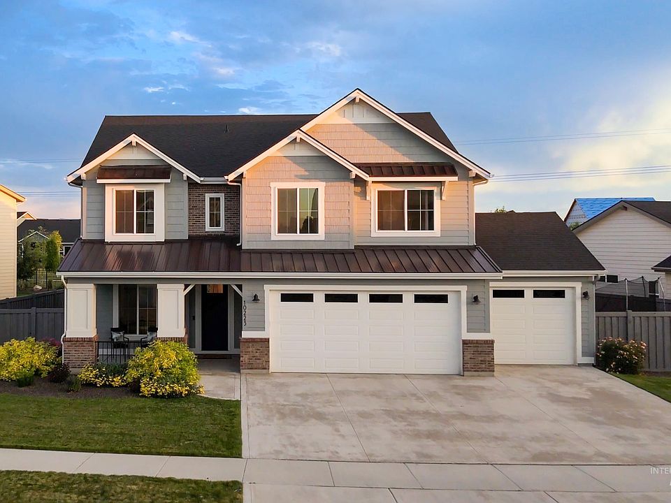 Discover the perfect blend of luxury and comfort in this stunning modern farmhouse. Step into the bright and airy great room, where tall ceilings and real hardwood floors create an inviting ambiance. The open-concept design seamlessly connects the living area to a chef’s kitchen, featuring generous gray-washed cabinets with soft-close drawers, an appliance station, a walk-in pantry, and brilliant quartz countertops. Stainless steel appliances complete the modern culinary space. The main level also includes a dedicated office and a convenient powder room. Upstairs, find the private sleeping quarters, featuring a spacious primary suite with breathtaking views. Indulge in the spa-like master bathroom, complete with dual vanities, a large tile shower, and a walk-in closet with elegant finishes. Alongside the primary suite are three additional bedrooms, and a large bonus room or 5th bedroom. Outside offers a fully landscaped yard and full fencing, providing a private oasis backing to community open space.