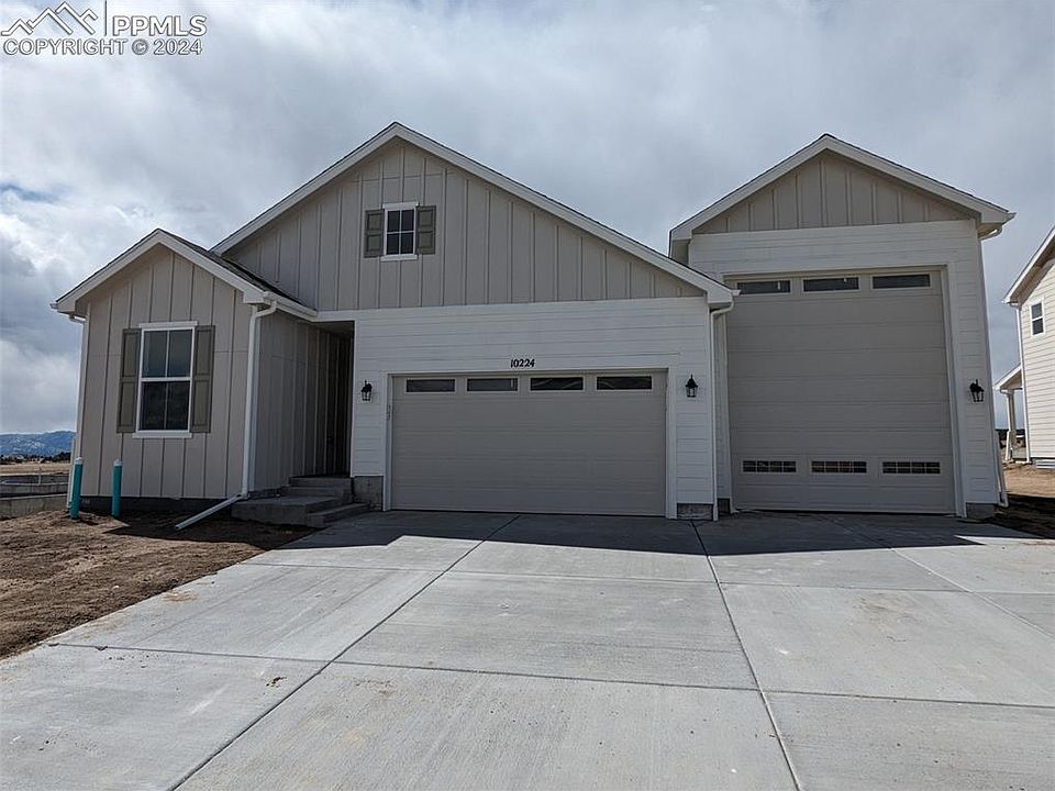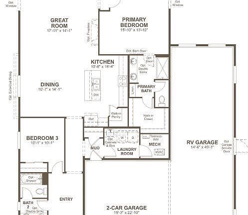 New floor plan with attached RV garage! This Bronze is waiting to impress with the convenience of its ranch-style layout along with designer finishes throughout. At the front of the home, you'll find two secondary bedrooms flanking a full bath. The open layout leads you to the back of the home where a well-appointed kitchen features a quartz center island, walk-in pantry and stainless steel appliances. The great room welcomes you to relax or entertain and flows into an open dining room with access to the covered patio. The laundry room rests near the primary suite which showcases a spacious walk-in closet and private bath.