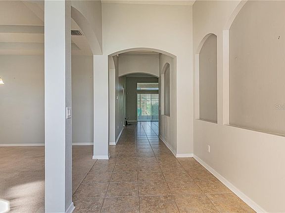 Enter the wide inviting foyer with Possible Art Gallery wall to the Right and Living Room and Dining room separated by a distinct archway and double tray ceilings in the dining room. (The addition of drywall and French doors would make the living room an easy conversion to an office). The home's main areas have all been painted recently. Enter the very Grand Great room with ceramic tile floors throughout. The Upgraded kitchen features 42" High Furniture Style Cabinets with Crown Moldings, Granite Counters and Stainless appliances. The Great Room opens out to the very deep and large screened lanai and over looks the spacious backyard. There is an easement which deepens the actual feel of the backyard and the trees offer privacy. The Master Suite is quite spacious with a coved ceiling. The spacious Master bath features separate double sinks with Granite Counters, a shower and corner Soaking TUB, and HUGH walk-in Closet. The other three bedrooms are quite spacious and on the other side of the home. The neighborhood offers a Community Pool and Park and Recreation area. This Riverview community has easy access to Downtown, The BRANDON Regional Mall and I-75.