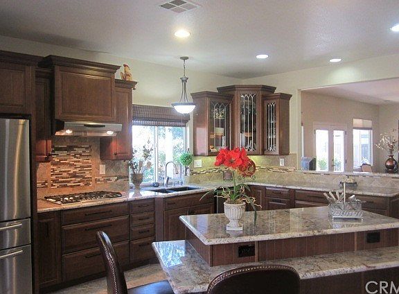Beautifully upgraded single story home with 3 bedrooms and 2.5 baths. The double door entry will invite you into this wonderful home with 9' ceilings. The formal living room has a ceiling fan, French doors and wood flooring. Enjoy time with family and friends in your family room with cozy gas fireplace with mantle, recessed lighting and porcelain tile flooring. You will love your beautifully remodeled dream kitchen! Warm, rich cabinets with pullouts, soft close, spice rack, lazy Susan, two pantries, stainless appliances with double convection ovens, recessed lighting and tile flooring. The master suite has wood flooring in the bedroom, a sitting area, two walkin closets added lighting and a slider to the backyard. The master bath has tile flooring, dual sinks with rich cabinetry, granite countertop, two decorative mirrors, newer fixtures, as garden bathtub and separate shower with grab bars. In a separate are of the home, you will find tow more bedrooms with mirrored closets and a bathroom with granite countertop, rich cabinetry, grab bar in the bathtub and tile flooring. The laundry room has rich cabinetry, granite countertop and tile flooring. Three car garage. There is a two car garage with direct access into the home and a separate one car garage. You probably won't find another home this incredible in today's market! Won't last!