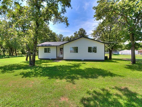 Come check out this completely remodeled home. Owner did a great job with updates using on-trend colors and finishes. Items recently replaced include flooring, interior texture and paint, cabinetry, granite counters, Pella windows, appliances, tankless water heater, all plumbing from the well pump throughout the home, all lighting, and the list goes on. There is a 40'x50' metal workshop at the back of the property. The shop contains 50 amp RV hook-up, wood stove, 220 electric for a welder, 4 skylights for lots of natural light inside, 2 overhead doors (a 10' and a 12' wide door and both are 10' tall) and the building is insulated. Utilities include OG&E, ONG, MWC trash and COX Cable is available. There is a well in the back near the shop and the septic is on the NE side of the home.