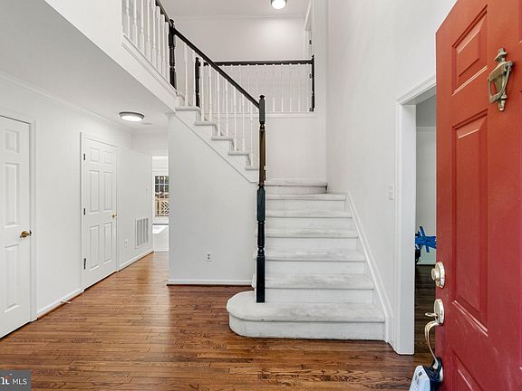 Explore this breathtaking colonial home nestled on a beautifully landscaped 1-acre lot at the end of a serene cul-de-sac. Featuring a striking brick façade accented by red shutters and meticulously maintained garden beds, this residence combines elegance and tranquility in the sought-after Burleigh Manor community. Step into the bright and airy main level, featuring hardwood floors throughout, beginning in the grand foyer that leads to the spacious living room, a dining room with a bay window, wainscoting, and a statement chandelier, a study, and a family room with a cozy wood-burning fireplace and French doors that open to a sunroom with cathedral ceilings. Additionally, you'll find a convenient laundry room and a half bathroom. Proceed to the sunlit eat-in kitchen, featuring abundant natural light and equipped with generous granite countertops, stainless steel appliances, a large center island with an electric cooktop, a breakfast bar, a pantry, and a convenient writing counter. The adjoining breakfast room offers easy access to the deck, enhancing both functionality and enjoyment. The expansive owner’s suite features vaulted ceilings, dual walk-in closets, and a luxurious private bathroom with double vanities, a separate shower, and a jetted tub. The upper level also includes two additional full bathrooms and four generously sized bedrooms, one of which boasts distinctive snowstorm architecture and dual access to a hallway bathroom. The lower level boasts a spacious recreation room with a built-in desk, backyard access, and a versatile bonus area that includes a full bathroom, and a sink. Additionally, there is an extra laundry room with a utility sink and storage space. Enjoy outdoor dining and entertaining on the elevated wooden deck, featuring a built-in bench and elegant Chippendale railings, all while overlooking the expansive tree-lined and fenced backyard. Burleigh Manor is ideally located near amenities, including the popular Ellicott City Historic District with eclectic shops and restaurants, scenic Centennial Park, and easy access to Route 29 for seamless commuting.