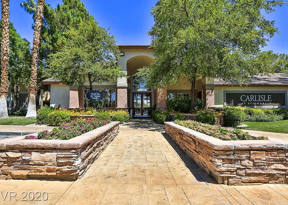 Shows like a new condo. Beautifully maintained first floor unit in the heart of Summerlin with one detached garage and one covered parking space. Stainless steel appliances in the kitchen with granite counters, hickory cabinets and breakfast bar. Master Bed has 2 walk in closets, master bath has separate bath and shower. Bedrooms are seprated by a spacious laundry room including washer and dryer. BRAND NEW PAINT AND CARPETING!!!. The association has a beautiful pool and Spa as well as a very clean Fitness area. Priced to sell!!!