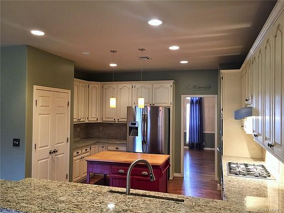 Beautiful One Level, Split Floor Plan, High Soaring Ceilings, Crowns, 4 Bedrooms, 2.5 Bath, Wood floors, Crowns, Formal Dining is open & Spacious, Family open to This Wonderful Kitchen, Granite, SS appliances, Over abundance of Cabinetry. JENKS SE SCHOOLS