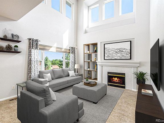 Significant price drop!! Come and see this lovely Highlands Ranch home. This gorgeous, open floorplan features high ceilings and incredible views! Ample living and entertaining spaces throughout - from the deck with sweeping mountain views to the tastefully finished basement with walkout entry to the green backyard. The primary suite windows also face northeast and provide breathtaking views of the Rocky Mountains! You'll find the comfortable, light-filled kitchen is ready to prepare your favorite meals and includes oak cabinetry and black stainless steel LG and Samsung appliances. Step around the house and see that the front and back yards are a gardener's paradise with raised garden beds that include watering systems, a front yard plum tree, and space for whatever your heart desires to grow! Upgrades and improvements throughout the home include modern bathroom remodels, basement is wired for surround sound and has built-in bookshelves, new windows in 2017, new 71 gallon water heater installed in 2020, outdoor deck off kitchen re-finished in 2023, 6-zoned AC and heater replaced within the last 5 years. The attached garage is oversized and has built-in shelving and a utility sink. Kentley Hills is the perfect neighborhood located close to open space trails, renowned HRCA Recreation Centers, shopping, top-notch Douglas County schools, C-470 and health care. You won't want to miss this gem!