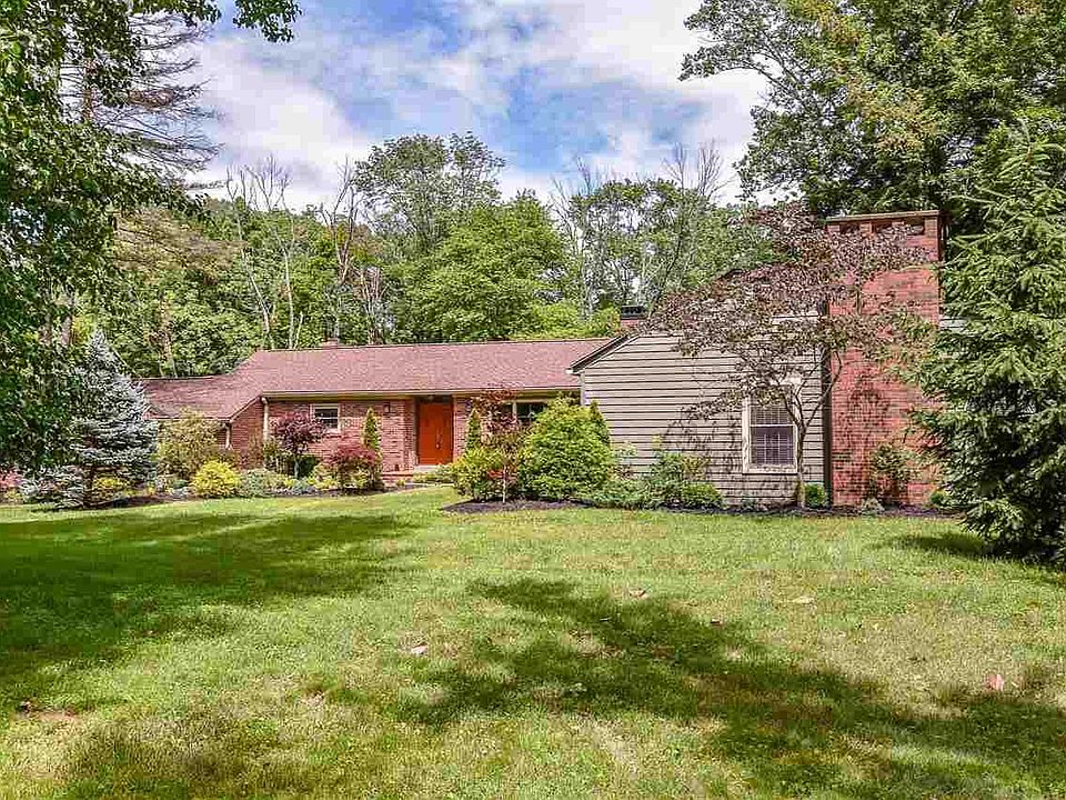 Impressive country ranch home sitting on 2.9 park-like acres in elegant McCutchanville. Enjoy a contemporary open floor plan for great entertaining and spacious living. Many nice extras such as the faux-finished kitchen with Fehrenbacher island and pot rack, graphite sink, beautiful tile and granite counter tops, and ceramic tile floor. The adjoining great room has a beautiful brick floor and paneled ceiling with cherry wood beams. One end of the great room features a brick fireplace with a sitting area, and the other end a Fehrenbacher built-in entertainment center. A wall of windows in the great room for lots of natural light and a wooded view. French doors lead to a brick patio arrea. The formal dining room and living room have beautiful red oak flooring and are open to each other. There is a powder bath with octagonal window off the hallway. The master suite wing of the home includes a sitting room/office, and a large master bedroom with a vaulted beamed ceiling, fireplace, clerestory windows, and oak wood flooring. Two closet spaces, a cozy sitting area around the fireplace, and access to a private covered porch are great features of the suite. The renovated master bath has a vaulted ceiling, double vanity, and an open shower with travertine floor and wall. Two guest bedrooms, one with a private full bath, plus a hall bath. The unfinished and waterproofed basement is a great storage and workshop area. Two car attached garage, plus a detached one-car garage.