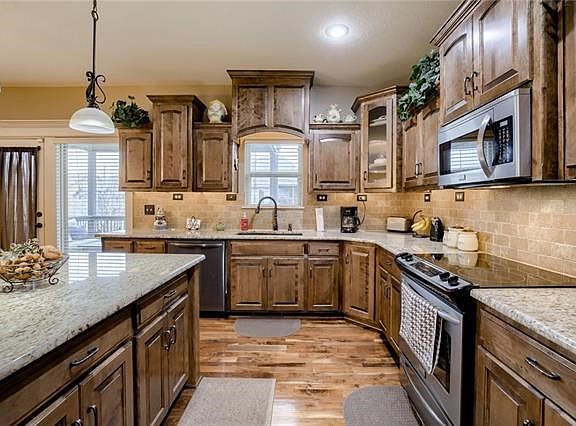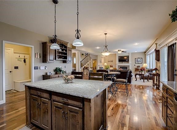 Amazing 2 story home, located in the coveted Amber Lakes subdivision, w/ Liberty North Schools! Full finished basement w/ 5th bedroom, wet bar, & media room, walks out to an outdoor living space, perfect for entertaining. Open concept living at it's finest, kitchen boasts a center island, granite, & walk-in pantry. Spacious primary bedroom/bath w/ double vanity, walk-in shower w/ double shower heads, & walk-in closet. Immaculately maintained. Pool table stays, Main Bedroom Suite stays and 2nd bedroom Suite stays. Amber Lakes offers residents 2 pools, tennis courts, walking trails, playground, fishing & club house. Easy access to I-35 & 291 HWY.