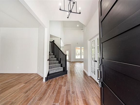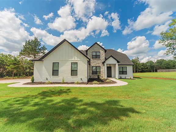 Gorgeous move in ready, custom-built, two level home with 3 acres of fully matured Pecan, Black Walnut, and White Oak trees. This home will give you all the space you desire and more. After you travel the lengthy concrete drive, you'll be greeted by a roomy 3 car garage with 12-foot ceilings and an in-ground storm shelter. If you walk the winding front sidewalk from the garage to the modernized front door, you'll pass by immaculate landscape that makes you feel right at home. A beautiful Foyer will greet you as you enter this magnificent home and immediately showcase the large Formal Dining with designer lighting to the left, and Study with French Doors and 16-foot Vaulted Ceilings to your right. Living Room is bright and airy with its 20-foot ceilings and massive windows that overlook the back part of your beautifully wooded 3 acres. Right next to this gigantic living space, it will open up to the Kitchen and Breakfast Nook. The Gourmet Kitchen is a dream come true with its floor to ceiling cabinetry, built in oven and gas cook top, vent hood, granite countertops, sleek backsplash, and under cabinet lighting. Master Bedroom features a huge bathroom with double vanities, large free-standing tub, 10-foot walk-in shower with multiple shower heads, and not one but two oversized walk-in closets with seasonal rods; and also has access to Laundry Room. Second level features a landing, 3 additional bedrooms and 2 full bathrooms, extra storage closets, and attic access. The Covered Back Patio with its 20-foot ceilings will be ideal for BBQs, game nights, and for all outdoor entertainment purposes. The inground irrigation system will keep your lawn and flower beds completely healthy, hydrated, and green as always!