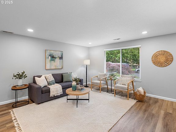 Sleek Ranch-style home in a beautifully peaceful neighborhood, thoughtfully updated, like new and move-in ready. This 3 bed, 1.5 bath home features a new roof (2024), new A/C, fresh interior and exterior paint, and new flooring throughout. The open-concept living and kitchen area creates an inviting, functional space—complete with soft-close cabinets, new countertops, Bosch dishwasher, range hood, and updated sink fixtures. The full bathroom has been fully renovated with a new tub/shower, integrated sink/countertop, and modern fixtures. The primary bedroom includes a convenient ensuite half bath.Landscaping is dialed in with mature vegetation, Japanese maples, blueberry bushes, one mature maple and a cherry tree in the backyard, and two stunning fir trees that wrap around the side yard—creating a serene outdoor oasis. The yard is fully irrigated for easy maintenance. Additional upgrades include LED lighting throughout the home, a thermostat-controlled attic fan, upgraded attic insulation, a new garage floor, and a detached shed with new siding, roof, floor, and paint.Systems include a 2-year-old gas water heater, 5-year-old gas furnace, and 5-year-old fridge. A truly turnkey home offering style, comfort, and a beautifully nurtured setting.