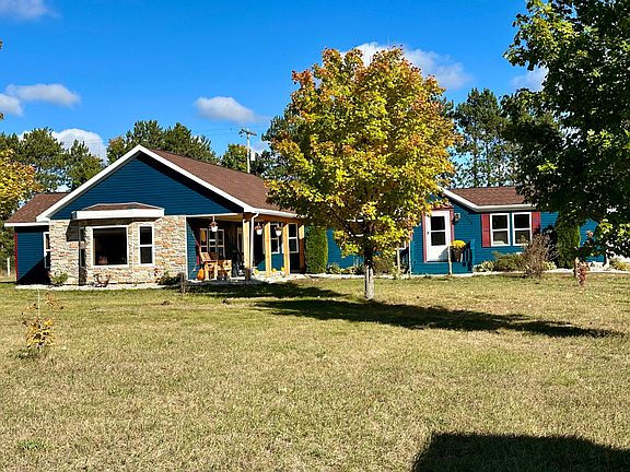 Country living at its finest, in this renovated 4BR, 2 Bath home in Kingsley! Ideally situated between Traverse City and Cadillac. This spacious home sits on just under 7 acres and offers the perfect set up for a hobby farm with a chicken coop, raised gardens and a tilled garden, apple trees and grape vines already in place. In addition, there are 2 40 x 50ft. pole barns with drive through doors. Recent upgrades include new windows, flooring, electrical and exterior siding. New roof on home and pole barn. Open floor plan with wood burning fireplace in dining area. Vaulted ceilings, solid wood floors, tongue and groove walls and pellet stove provide a warm inviting space for gatherings in the newly built family room. Updated kitchen with newer appliances, island, large walk-in pantry and laundry room. Enjoy evenings on the covered front porch off family room, or sitting on the screened patio which leads you out to a created sandy/beach themed oasis with a fire pit. The back acreage includes a mix of hardwoods and pines, offering beauty and privacy.