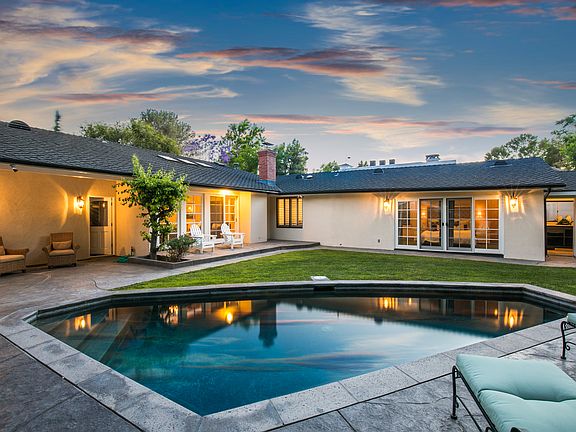Located in the most exclusive and desirable area of Toluca Lake, this updated Traditional,Single story , Modern home sits on an Oversized lot opposite to prestigious Lakeside Golf Club. Entertain effortlessly in the spacious family room with bar seating, fireplace and vaulted beamed ceilings. Indoor/outdoor living is accessible through French doors. Sun-filled living room features a fireplace and mountains and Universal Studios views. Kitchen is equipped with granite countertops, Sub-Zero fridge, Bosch double ovens, built-in coffee station and breakfast nook with wet bar and beverage fridge. Baths have been upgraded with granite/marble counters and pedestal tubs. An office/gym with separate entry overlooks enchanting outdoor spaces with towering trees and meandering paths. Two car attached garage. This home has great potential for expansion taking full advantage of sweeping golf course and city light views.