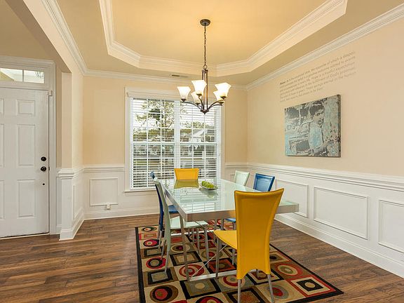 Charleston-style home with Master Suite on Main & beautiful upgrades throughout. Heavy crown moldings, Oil-rubbed bronze fixtures, wide-plank hardwoods on main level, beautiful granite, & stainless appliances provide elegant appeal. Luxurious Master suite, spacious closet, trey ceiling. Wrought Iron Balusters, all bedrooms are bigger than standard size and spacious loft for additional entertainment. Screened patio and 4' garage extension.Great walking neighborhood - playground and pool.