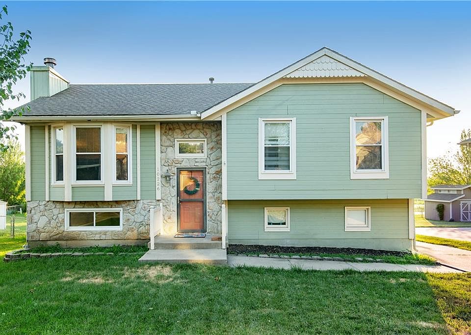 WOW! Welcome HOME! Adorable home in Deerfield. Such a GEM! Awesome family room great for a man cave, play room or bonus space! Walkout basement! Bright living room features vaulted ceilings, and bay style front windows. OPEN FLOOR PLAN features a dedicated family sized dining space and charming kitchen with vaulted ceiling. Deck off of kitchen overlooks spacious back yard. Windows have all been replaced by a previous owner, such a wonderful UPGRADE!  There's a 2 car garage in the back, but still plenty of grassy area to host BBQs or have kids play in. Finished downstairs has an extra living space and a half bath. Plenty of EXTRA PARKING! HOME IS LIGHT, BRIGHT, AND AIRY!!  Dedicated laundry room as well. Neighborhood has easy access to 169 Highway and shopping and restaurants. A MUST SEE! Seller believes roof is 10 1/2 yrs old. The kitchen cabinets are now freshly painted white.