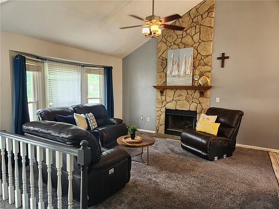 - Features: Carpet, Ceiling Fan(s), Fireplace