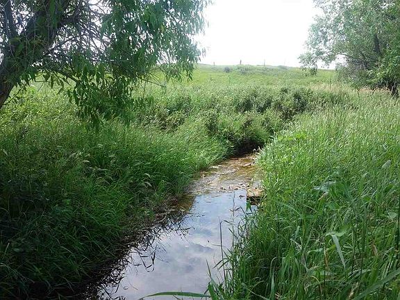 The Crow Peak Ranch is a highly scenic 550 acre block of deeded land located only 7 miles west of Spearfish, South Dakota at the base of the Black Hills. Two creeks run through the ranch with one flowing year around. The improvements are highlighted by a remodeled ranch house of 1,200 square feet with 2 bedrooms and 2 baths. Also included are 2 barns, shop and open front storage. The ranch produces hay on over 100 acres. It is watered by a flowing artesian well, 2 creeks and a pond. Abundant wildlife can be found in the wooded draws. See detailed brochure in associated docs.