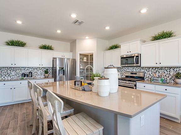 Plan 2121 welcomes you into a foyer, from either the front door or three-car garage. At the front of the home, you'll find three bedrooms, a full bathroom, powder room and storage options. One of the bedrooms can be optioned into a den, perfect for a home office or reading room. The open-concept living space contains a great room, large kitchen and cozy dining area?perfect for entertaining. Off the great room is the laundry room and master suite, which includes a spacious bedroom, master bathroom with dual-sink vanity and a walk-in closet.