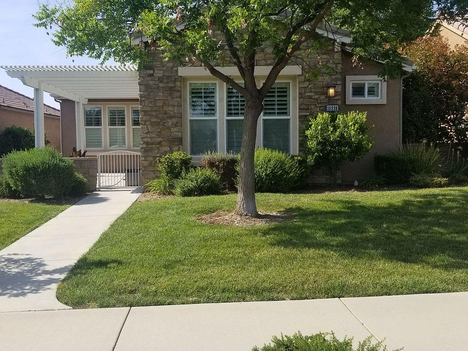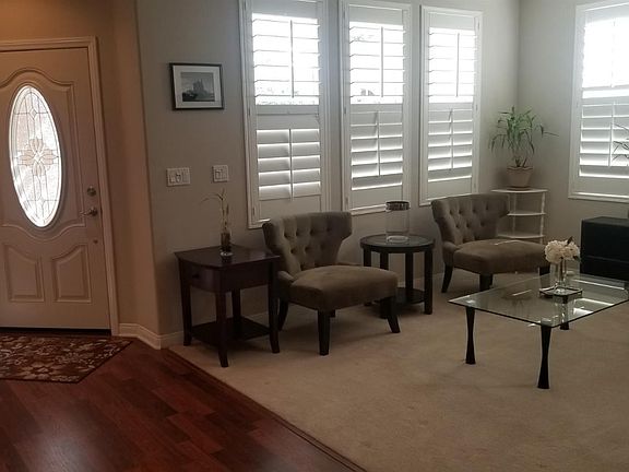 This home is in the Popular Active Adult 55+ Community of Four Seasons. You will love the open floor plan from the time you enter the home w/plantation shutters & wood like flooring. Living room has a fireplace, is open into the kitchen & dining area. Kitchen has a walk-in pantry and abundance of cabinets for storage. The master bed & bath are private w/walk-in closet. Guest bed and bath are off the nice den. The patio has plenty of room for your relaxing time and for those BBQ's. The garden even has fruit trees. Also, has indoor laundry with 2 car-garage. Resort style living w/club house that features a full staff on site. The resort offers it very own cafe restaurant, ball room, gym, craft room, library, computers, pool & spa, tennis courts, shuffleboard, pickle ball court, bocce, hair salon, ping pong and a calendar full of activities for your enjoyment. You will not be disappointment by making an appointment for a tour of this home & community as this isa wonderful lifestyle