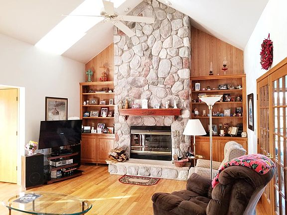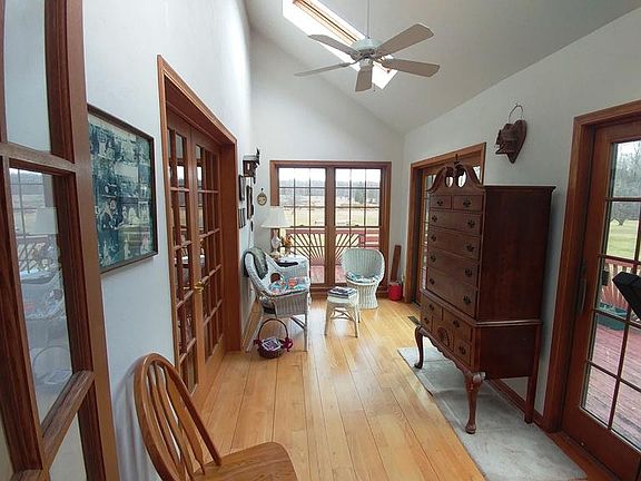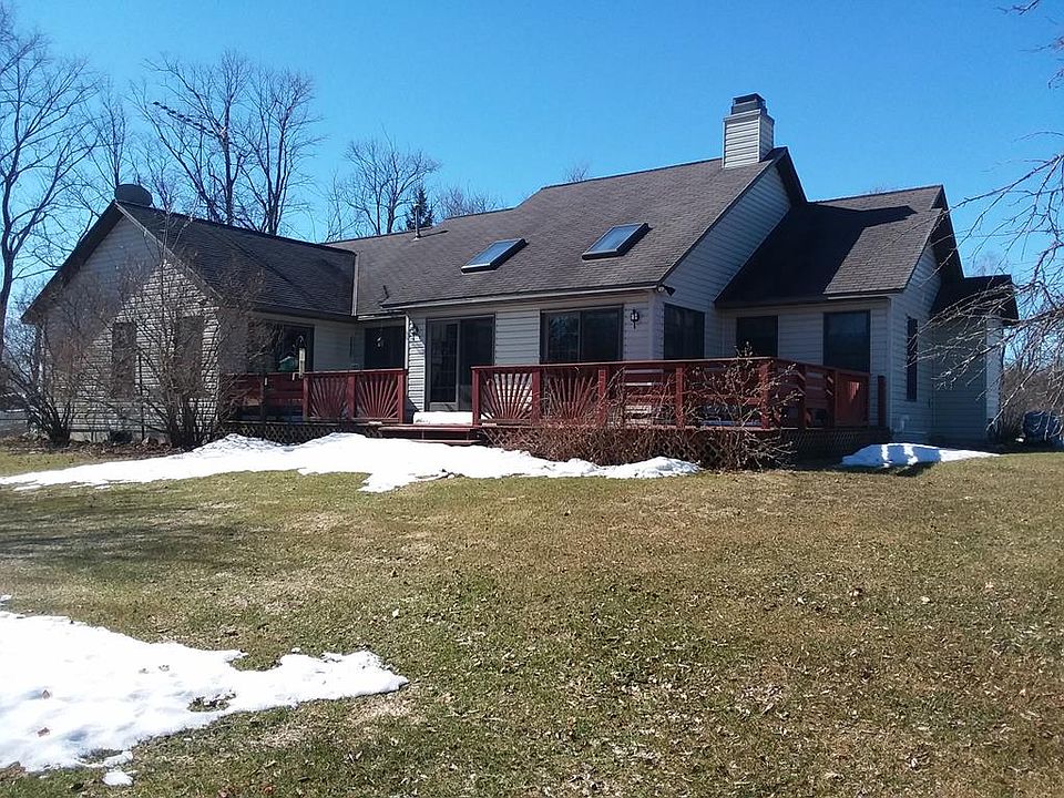 Located just outside of Sister Bay on 10 scenic acres, this home offers a quiet country setting with the convenience of near-town living. The custom built home is situated at the crest of a hill, overlooking former orchards and a nice stand of hardwoods. Features include a spacious living room with wood-burning fireplace, vaulted ceiling, and hardwood floors. The sunroom overlooks the large deck, and numerous skylights and windows flood the space with natural light. A split floor plan is ideal for visiting guests or family, with the master bedroom at one end of the home and two bedrooms and a full bath at the other. A full basement offers plenty of space for a workshop, storage, or possibly additional living space.