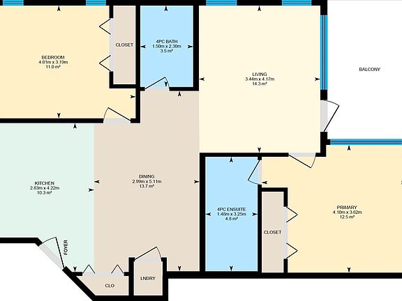 Top-floor corner condoOversized windowsWide-plank flooringQuartz countersStainless steel appliancesIn-suite laundryPrivate balcony