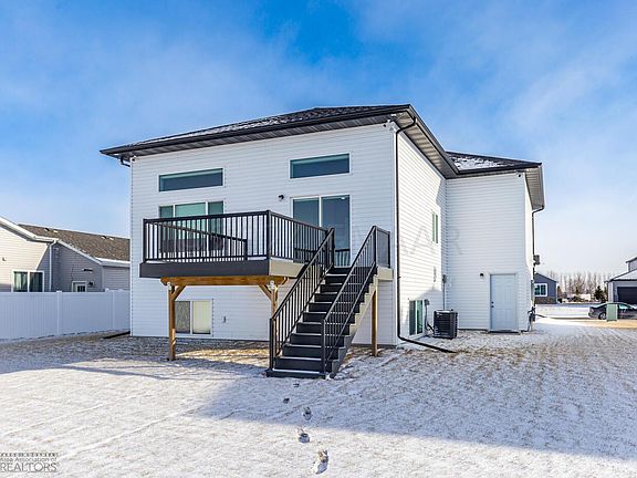 Immerse yourself in luxury living with this immaculate 4 bed, 3 bath home nestled perfectly in the vibrant Maple Lake Estates neighborhood in Horace. The allure begins with the elegance of high ceilings and the finer details like upgraded railing, garage doors, battery backup sump, and over $10k in upgraded mechanical Blooming Blinds adorn every room, elevating the home's aesthetic! Step onto the maintenance-free deck, ideal for relaxation, entertaining, BBQ'ing, and overlooking your large yard conveniently equipped with sod and a sprinkler system. Experience a harmonious blend of style and functionality in this residence, a true gem in a desirable location. Why buy new when you can get all of this for a better price? Set up a private showing today and start living the life you've always dreamed of!
