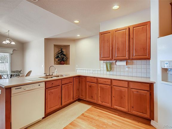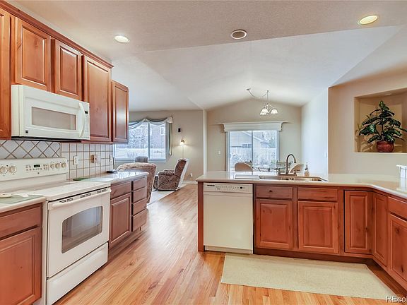 Upon entering the home, you are greeted by the formal living room with beautiful glass french doors and formal dining space with plenty of room for entertaining. Continue through the main level to the open-concept, eat-in kitchen and living room. The kitchen features Corian countertops, pantry, hardwood flooring, breakfast nook, and plenty of cabinet space. There is a sliding glass door out to the back patio to enjoy the fresh Colorado air! The living room is spacious, and the gas-log fireplace with built-in shelving makes it very relaxing and cozy. The enormous master suite features a beautiful, en suite, 5-piece bathroom complete with jetted tub and walk-in closet. There are two additional bedrooms on the main level that share a full bathroom. Head down to the basement where 1200 sf has been carpeted and drywalled and can be enjoyed as an extra family room. You will not believe all of the space available for recreation as well as storage! The amazing Hobby train station in the basement is negotiable with the house. There is a pergola and back patio in the spacious, xeriscaped backyard. The home had a new roof installed in 2019 and the house has instant hot water with the hot water heater return! This a wonderful opportunity in a friendly, quiet community. Welcome Home!