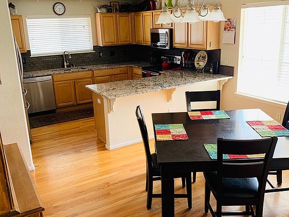 Spectacular ranch home in St. Vrain Ranch with open space behind and a large park across the street. Full finished basement with rec room, upgraded bathroom, bar, and mother-in-law suite if needed. Corner lot makes this a great home for entertaining, and provides additional parking. Hot Tub included, large covered patio, master-suite, this home has it all at an Excellent price.