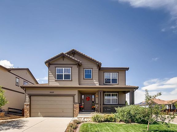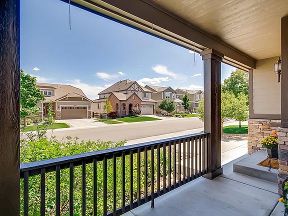 Charming, immaculate home in Meridian Village has gorgeous finishes throughout. Friendly front porch has room for seating. Step inside onto wide-plank wood floors in a rich dark stain. Formal living area features living room that opens to dining room under an upgraded stylish chandelier. Wood floor extends to the sunny family hub that features a beautiful kitchen with slab granite counters & stainless appliances. Kitchen highlights include an eating area, handy island, double oven and spacious pantry. Opens to family room with ceiling fan and gas fireplace framed in stone surround and wooden mantle. Four bedrooms upstairs! Stately master suite features a luxurious 5-piece bath w/ tile & granite & huge walk-in closet with custom shelving. Secondary bedrooms are serviced by full bathroom w/ double sinks. Convenient upstairs laundry. West-facing backyard features stamped concrete patio & room for kids & garden. Oversized garage is dry-walled. Minutes to highways, tech center & malls.
